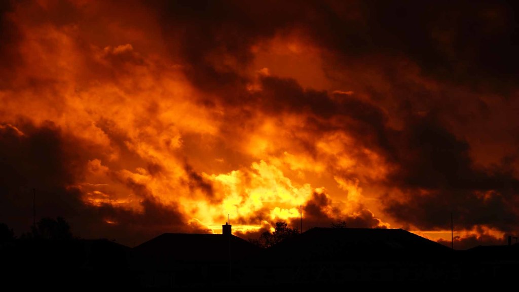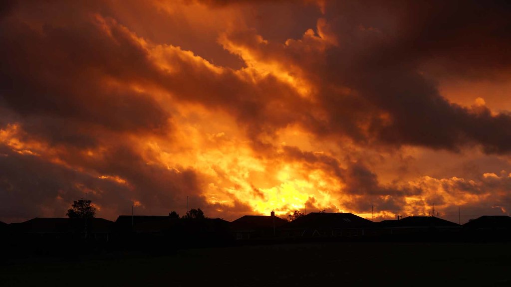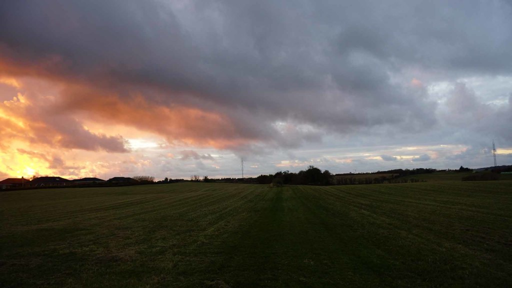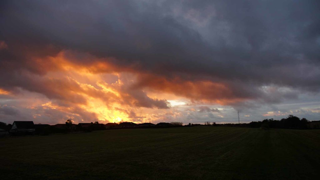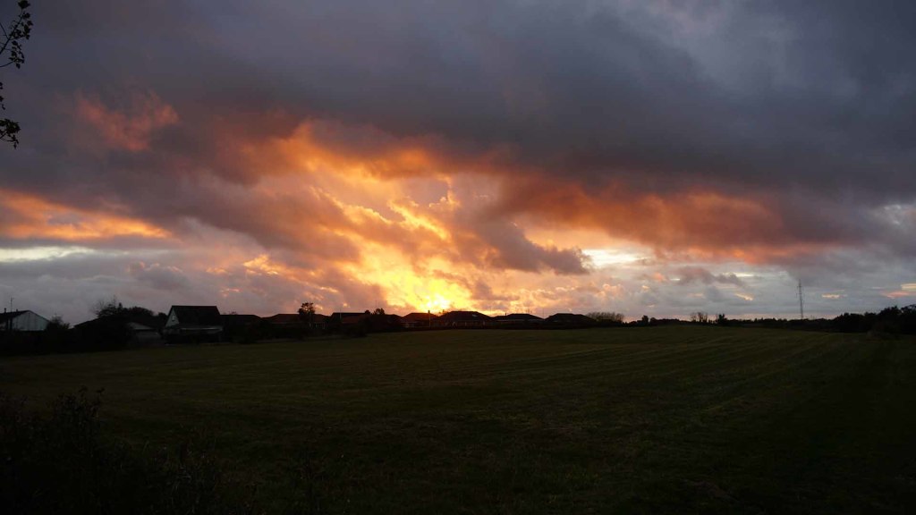 Solnedgang set fra baghaven ved Møgelvej 45